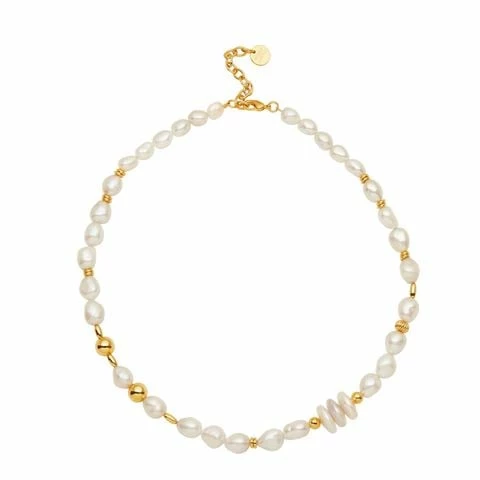 The epitome of modern elegance (Audrey Hepburn just called and her necklace is waiting), the Lars Necklace gleams with a lustrous strand of freshwater pearls in various sizes, accentuated by textured 24K gold plated detailing.