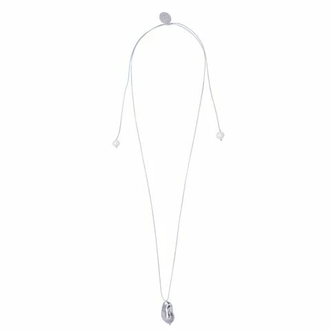 - Made with white freshwater pearls, a rhodium plated cast pearl and rhodium-plated Bowerhaus charm on coloured waxed cord.