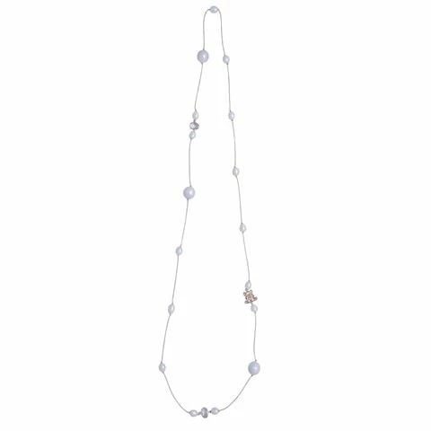 Strike a chord with someone you know and love, with the Diamonds & Pearls Love Knot Necklace. Waxed cord supports beautifully lustrous freshwater and baroque pearls and faceted rock crystals beautifully accompanied by an eighteen karat gold-plated Bowerhaus charm. Perfect for layering and mixing and matching colours.