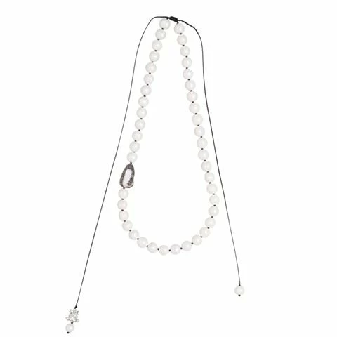 - Knotted onto an adjustable waxed cord finished with a freshwater pearl charm and Bowerhaus rhodium-plated charm.