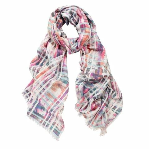 Make a style statement with the DLUXE Louise Graphic Overcheck Scarf. Its design features this season’s colour palette and woven from fine lightweight soft cotton yarns. Digitally printed in the DLuxe specailist workroom. The oblong shape is finished with small fringes. Perfect at any time