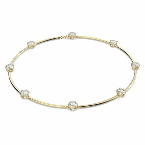 Inspired by the classic solitaire, this delicate necklace is crafted from a fine, gold-tone plated band studded with round, brilliant cut stones. Each section is linked at intervals, calling to mind constellations and the magic of stargazing. Wear yours with denim and a simple white T-shirt to bring the cosmos to the everyday. This necklace is part of the Constella range, designed by Swarovski Creative Director, Giovanna Engelbert for Collection II.