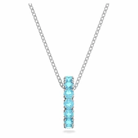 Bring harmony to your look with this beautiful Swarovski Exalta Pendant in blue with rhodium plating. It features aquamarine crystals – a colour often associated with tranquillity and it’s finished with a sleek rhodium plated setting. This serene piece is just what you need to be wearing in the CBD.