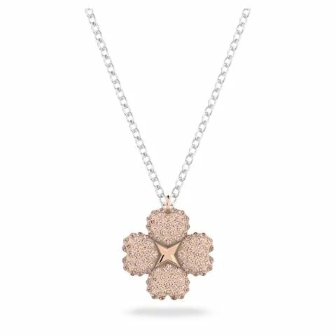 Express your individuality with this Swarovski Latisha Pendant. Inspired by flowers, this sweet, reversible pendant features an elegant flower motif that shimmers in pink crystal on one side, and white crystal on the other using Swarovski’s exclusive Pointiage® technique. It’s finished on a contemporary rhodium plated chain, which is an edgy counterpoint to the floral look.