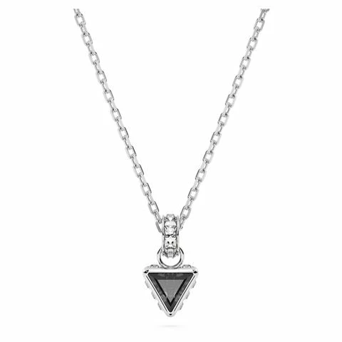 The Stilla Pendant is simple sophistication. The triangle-cut grey centre-stone sits in a rhodium plated surround, enhanced with small square crystals around the edges and the bail. Beautifully attached to a rhodium plated chain, wear it everyday and make it part of your personal style.